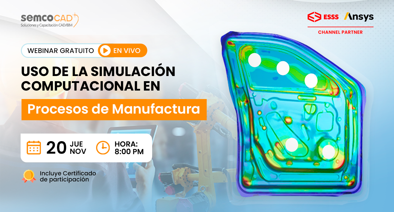 En este webinar atenderemos la importancia de la simulación computacional y su impacto positivo en los ciclos de diseño y manufactura, así como también presentaremos ejemplos aplicados de simulación dirigida a procesos de manufactura y transformación de materia prima necesarios para la fabricación de productos terminados.